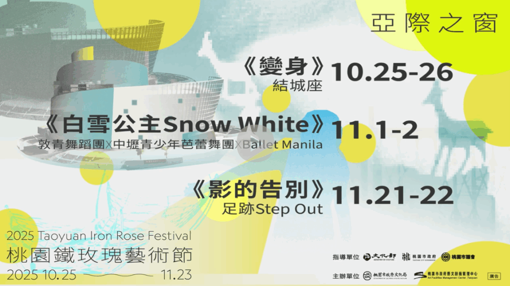 半透明城市,是由今年鐵玫瑰藝術節拋出的想望,回應透明社會帶來的疲憊。我們視劇場為一處不斷探索人與社會之間關係、預演現實的空間,半透明的意思是,我們更在意如何透過各個創作的邊界之眼,以及共享當下經驗的觀眾之心,晃動城市中可見與不可見的既定關係。 2025 桃園鐵玫瑰藝術節 團隊影片 亞際之窗 2025-09-27 2025 鐵玫瑰藝術節 前導宣傳影片 2025-08-16 結城座的懸絲奇蹟 ─ 偶戲《變形記》首度登台 2025-08-15 2025桃園鐵玫瑰藝術節8/15啟售! 2025-08-13