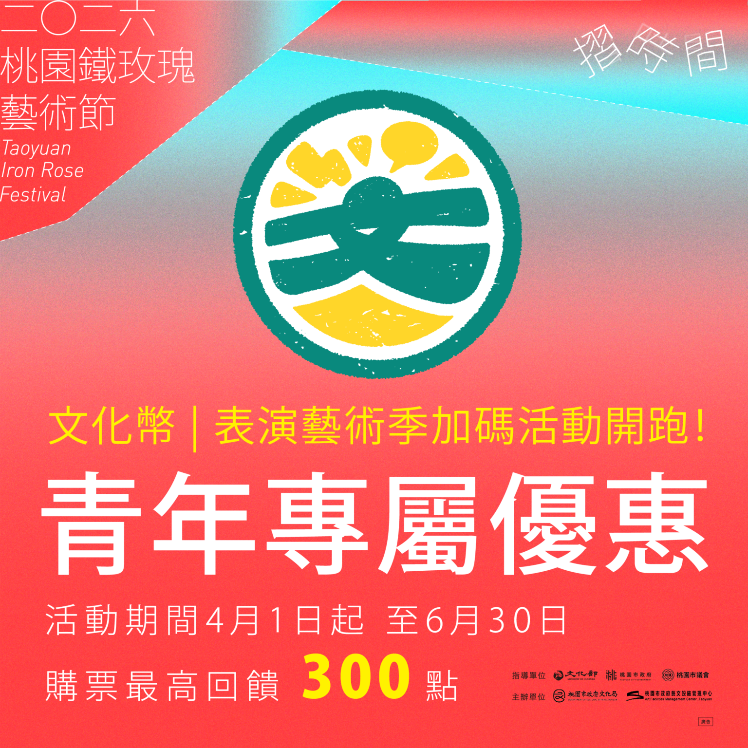 如果時間是一張白紙,當我們將它對摺的時候呢?第一個,時間變成了兩條平行的時間,第二個,微微的摺痕出現了,這個簡單的動作想像,就已經象徵地告訴我們,不同地方的時間「並不同步」;而那道摺痕,就像是我們,甚至歷史走過留下的諸痕跡,有時像傷疤,有時像是皺褶般的地層,都讓時間開始變得「不平」。創作,便是在「不平」之中發生。如同生活在同一個世界的人,如何體會彼此的差異,乃至於作為一個城市藝術節,如何修補文化環境中區域發展不均的差異。 【青年限定.文化幣|加碼活動開跑】 2026-04-21 ╲╲ 早鳥優惠 正式啟動 ╱╱ 2026-01-20 2026桃園鐵玫瑰藝術節 — 摺時間 1/20啟售! 2026-01-20
